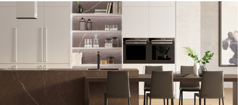 放在厨房的好处不言而喻,就是直接取用比较方便啦!而且可以跟橱柜做在一块,融为一体。