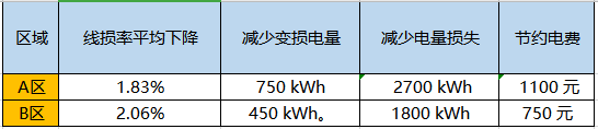 采用静态无功补偿两试点区域基本六个月左右收回成本。茄子视频app色版将A区域的无功补偿设备退出运行,结果该区域月末台表抄见电量为27970 kWh,客户抄见电量为 23280 kWh,线损率为 16.78%,线损反弹。